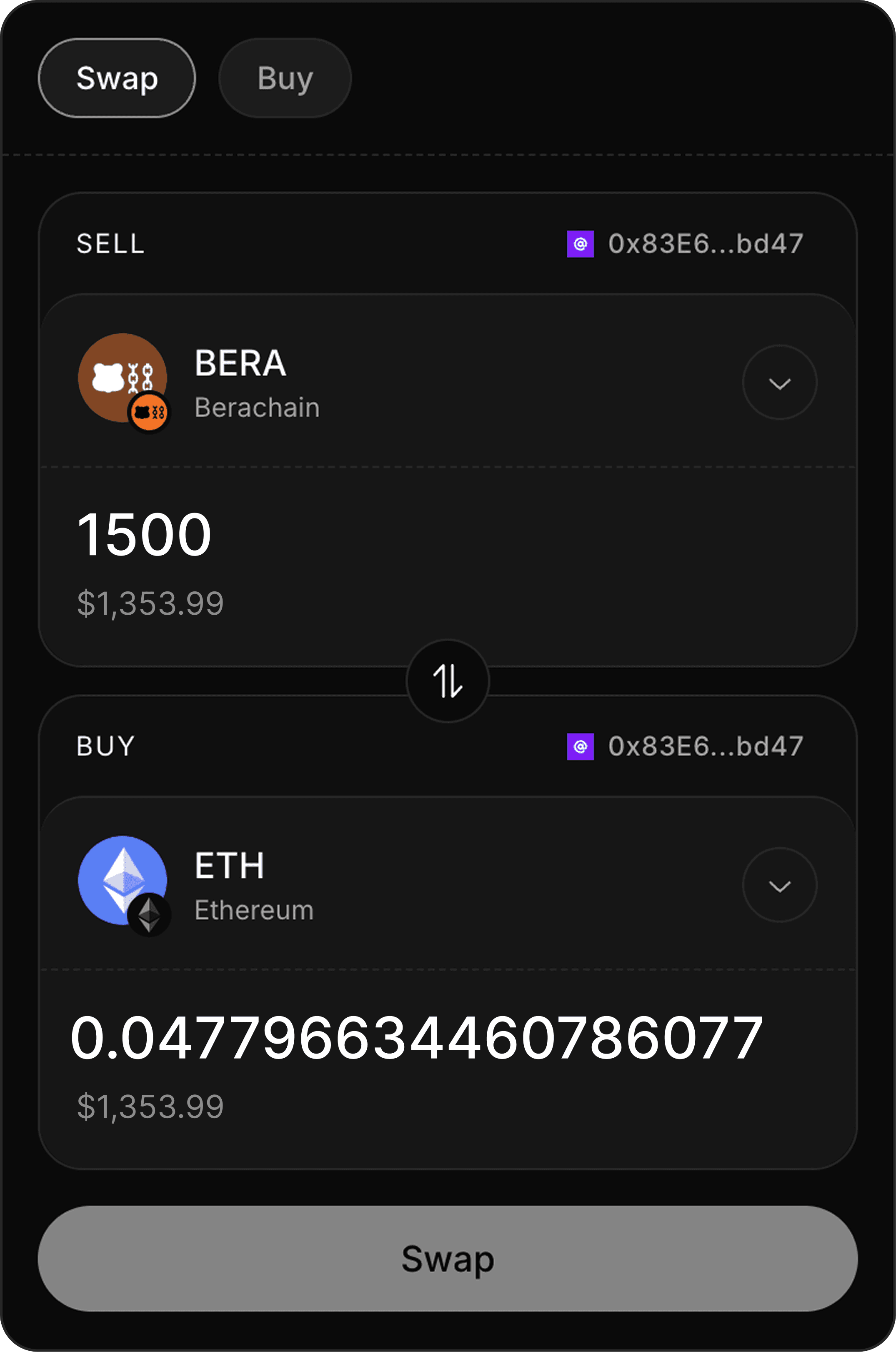 Reduce user drop-off by ensuring users are able to swap tokens directly within your application.